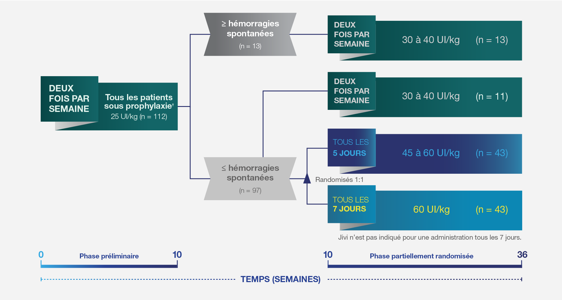 La posologie de Jivi a été personnalisée en fonction des tendances hémorragiques des patients1,6
